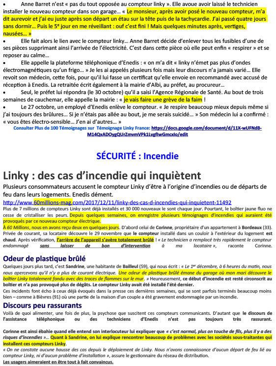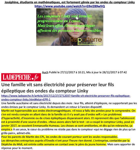 Cependant, la CRE continue de nier les souffrances des personnes électro- hypersensibles, liées à l’emploi du CPL (courant porteur en ligne) par les Linky. La CRE ignore les coûts