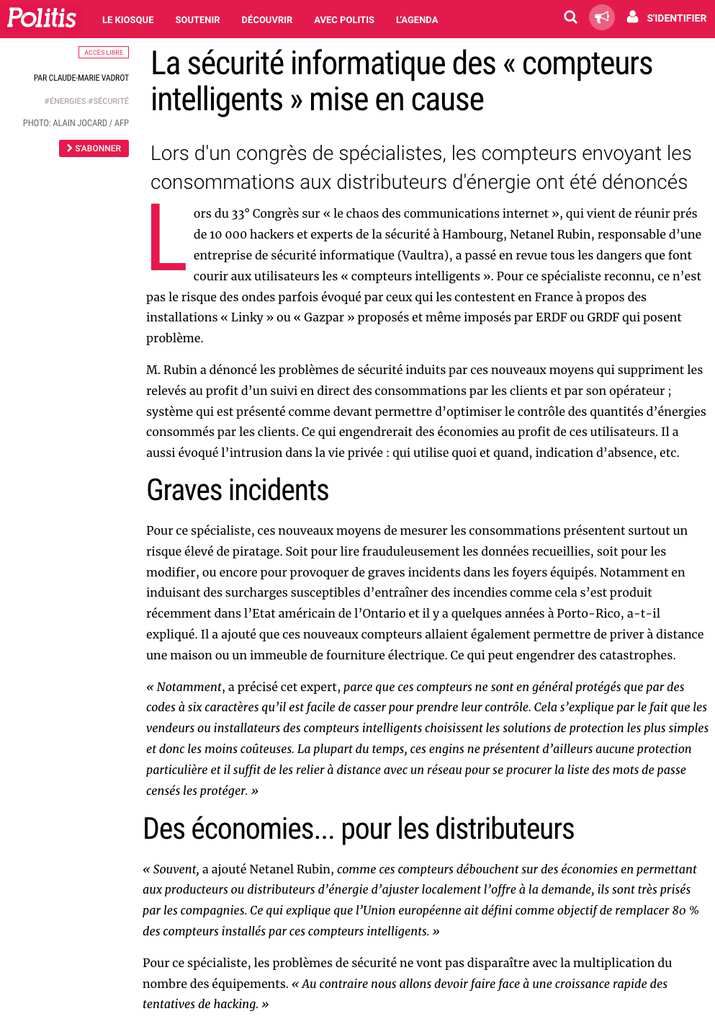 Mais ce n'est pas tout : pendant le confinement, le maire de Nice, M. Estrosi a demandé à ce que les compteurs Linky soient utilisés pour traquer les citoyens venus se réfugier dans les résidences secondaires plutôt que de rester enfermés dans leurs appartements. Cela n'a pas été possible cette fois car le programme Linky n'était pas encore achevé, mais cette option existe désormais.