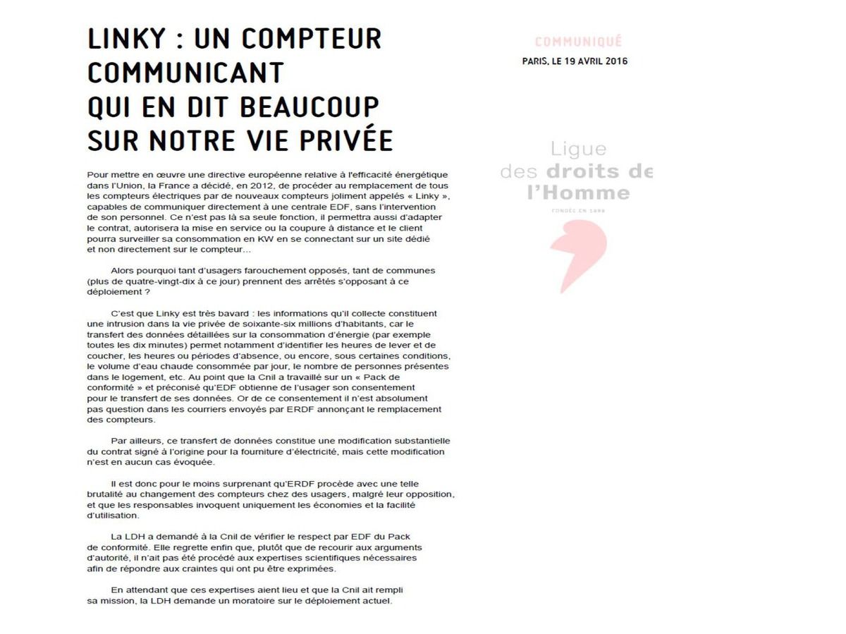 COMMUNIQUÉ DES 215 COLLECTIFS ET ASSOCIATIONS STOP LINKY