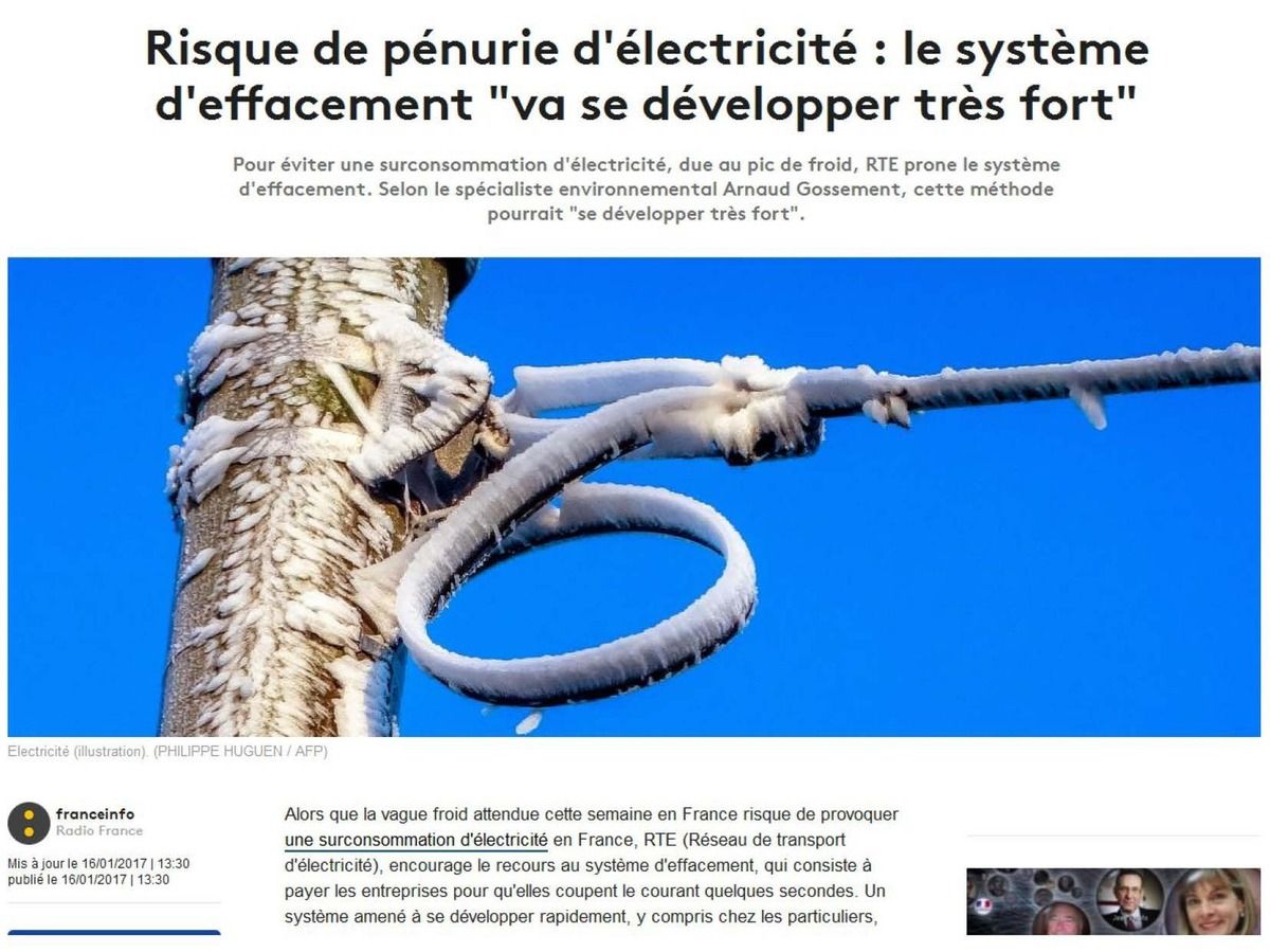 C'est alors que les compteurs Linky vont pouvoir entrer en jeu en réduisant ou en coupant automatiquement la consommation des ménages… sauf à l'encontre des quatre millions de foyers qui résistent encore vaillamment à la pose de ces compteurs malfaisants (nous ne revenons pas ici sur leurs différentes tares : surfacturations, dysfonctionnement divers, incendies, ondes, destruction de milliers d'emplois, etc).